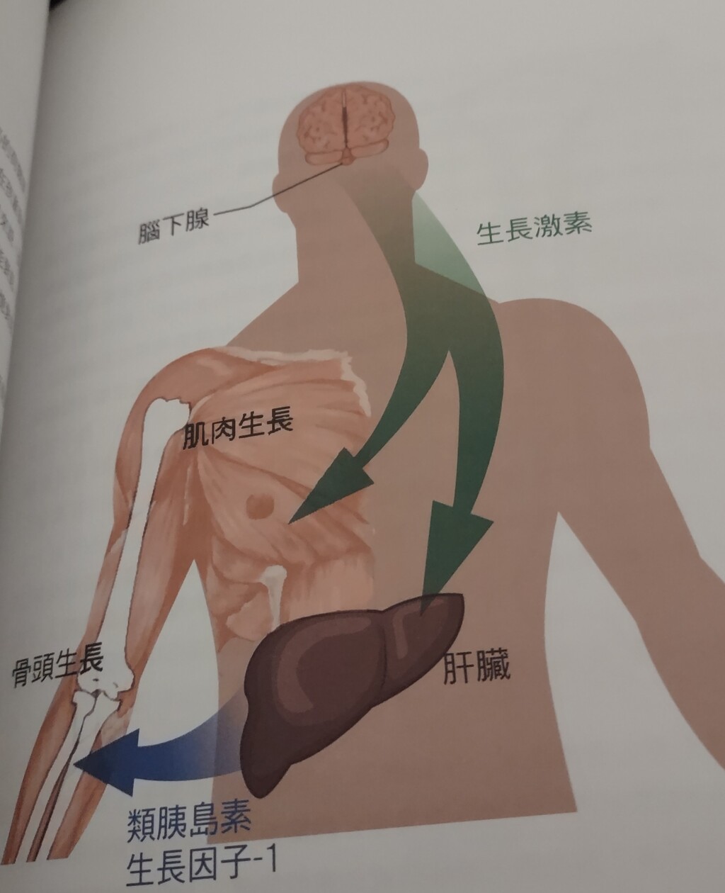 但是,生長激素從腦下腺分泌後,並非直接作用在身體各器官,而是到肝臟找分身代勞。此分身是IGF-1 是肝臟經生產激素刺激後分泌的一種荷爾蒙,稱為「類胰島素生長因子-1」(insulin-like growth factor-1) ,接着IGF-1會到所有器官去執行生長激素的功能(看圖)。所以,可以將GH和IGF-1都當做生長荷爾蒙。